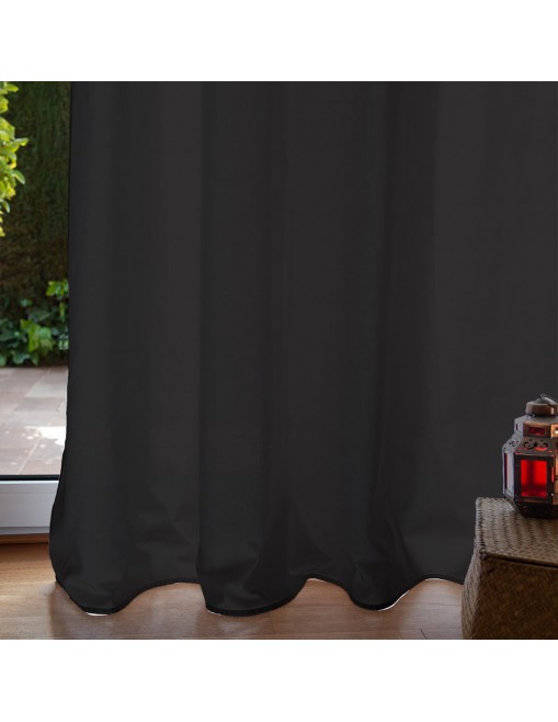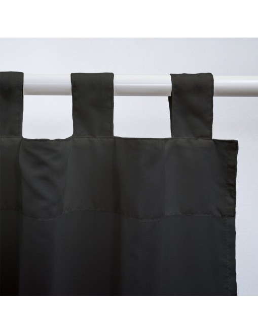 Cortina Loneta en color gris oscuro con un nivel de semi-opacidad, ideal para dar intimidad y un toque de color. Confeccionada con Trabillas para colgar.